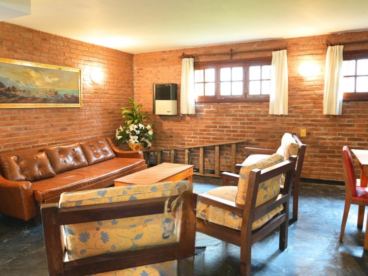 La vivienda cuenta con un amplio living con hogar a leña, muy luminoso, con salida a un balcón con vistas abiertas a la calle y la plaza. El comedor, integrado y ventilado, se vincula con una cocina independiente totalmente equipada, con barra desayunadora y acceso directo al exterior.