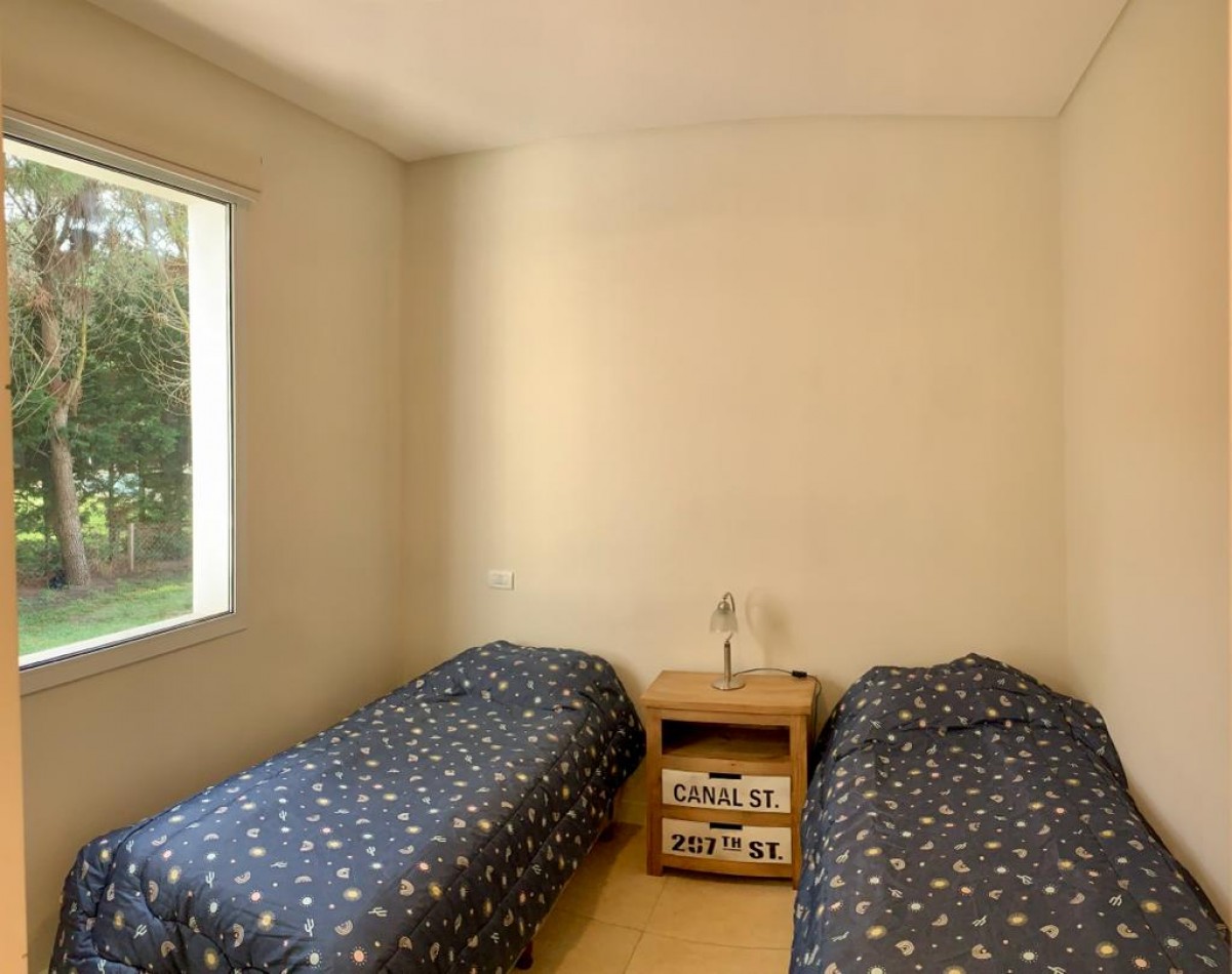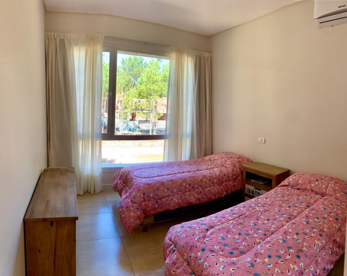 Dos dormitorios con camas individuales cada uno y baño completo.