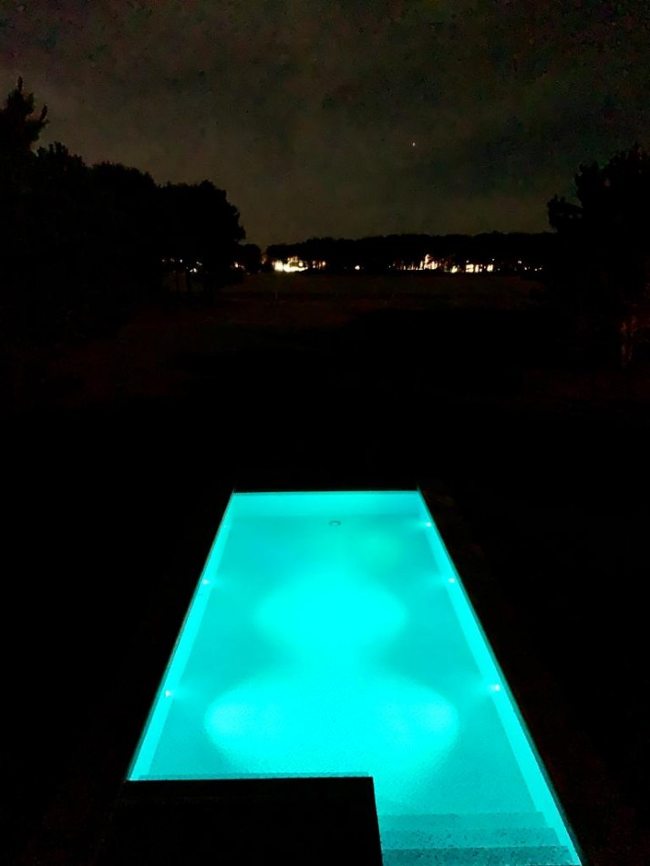 En la parte exterior la combinación del parque, la piscina climatizada por paneles solares ofrecen impresionantes vistas panorámicas.