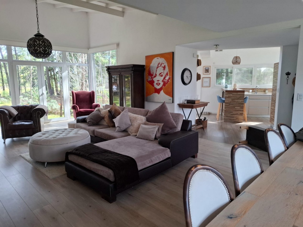 Ubicada en el exclusivo entorno de Cariló, rodeada de bosque y tranquilidad, se encuentra esta distinguida propiedad que combina solidez constructiva, amplitud y detalles de calidad.